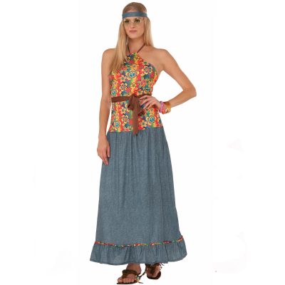 Hippie Groovy Girl Jean Skirt Flower Top Costume