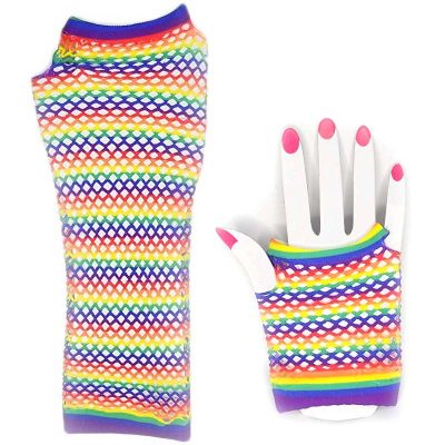 PRIDE Rainbow Fabric Fishnet Gloves