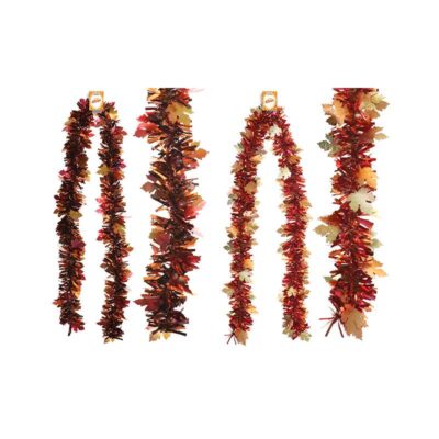 6.5′ Fall Harvest Tinsel Garland w Leaves