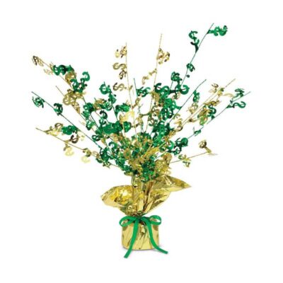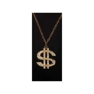 Round Metallic Bead Necklace w Jumbo Dollar Sign