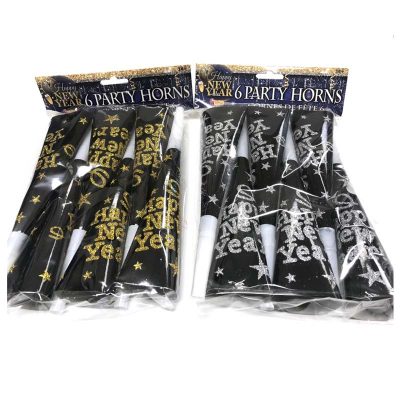 Happy New Year 8 Inch Glittered Foil Horn Noise Maker
