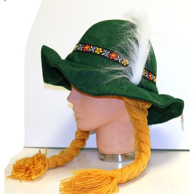 Dark Green Felt Bavarian or Swiss Hat With Cord and Feathers