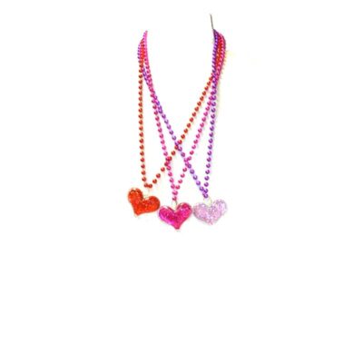 Metallic Bead Necklace w/Glittered Heart Pendant