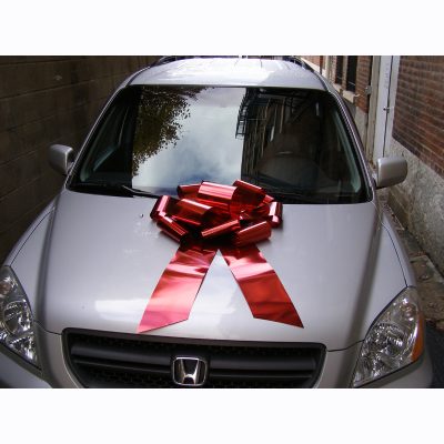 Car Bow – Jumbo Red Metallic Vinyl giant ribbon