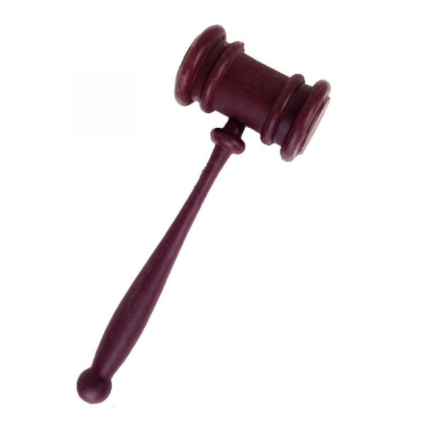 10.5″ Brown Plastic Gavel with gold wrap in the center is a great accessory for a judge costume.