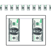 This is an all weather pennant string. It measures 10″ X 12′ and has oversized plastic $100 bills as the pennants.
