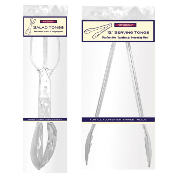 Clear Plastic Tongs are disposable plastic serving tongs for salads and individual pieces of food such as corn on the cob, hot dogs, breads and pastries. Made of polystyrene for rigidity and durability.