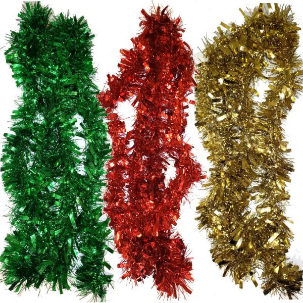 12′ Metallic Tinsel Festooning Luxury Garland is perfect for the holidays and themed events. Hang this on walls, in doorways or around a party table.