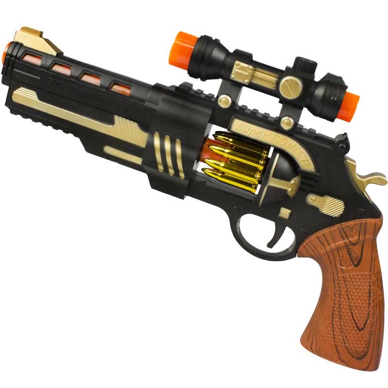 Have fun watching this 13 Inch Plastic Revolver Gun w Motion Lights Sound when you pull its trigger! It features the super sound light electronic series!