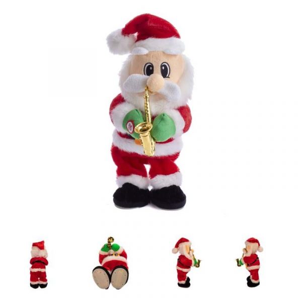 Add a fun unique touch to your holiday décor with this plush dancing jazz Santa! Its classic design features Santa wearing his red and white Santa suit and hat. Complete with saxophone, this jazz Santa dances when you push the button on his right hand.