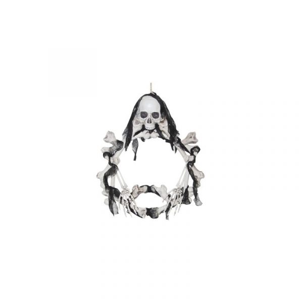 15″ Costume Foam Light-Up Skull Wreath is perfect for decorating. Use this for Halloween, goth parties, pirate themed parties and more. Light up the bones of your victims. The eyes of a human skull (foam, not real) light up. Don’t stare directly into its eyes, he might draw you in to a nightmare. The wreath measures approximately 15x16x3 inches. It needs 2 AA batteries that are not included. The foam wreath is light weight and safe to hang from doors or on walls.