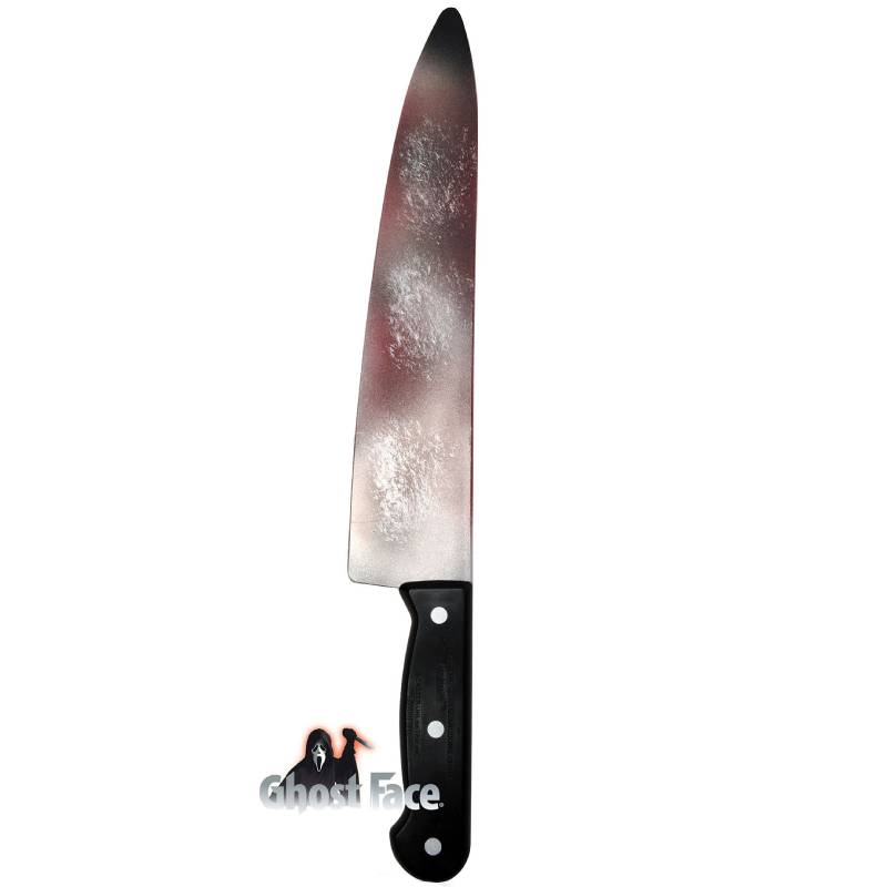 Ghost Face Bloody Butcher Knife measures 15″. Buy this for Halloween, theatrical productions, cosplay and themed parties.