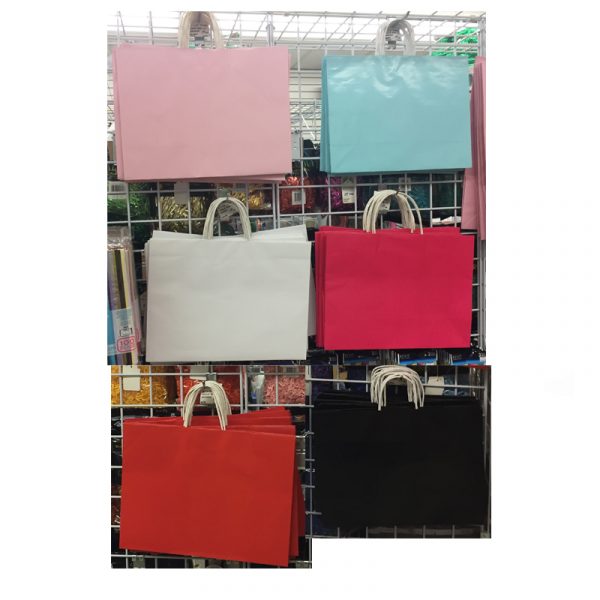 Paper Tote Bags measure: 16″ X 12″ X 5.75″. The Paper Vogue Bag style features a shiny finish with twisted handles. Use this bag for a gift bag, shopping bag, party favor or decoration!