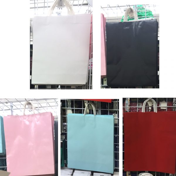 Paper Jumbo Shopping Tote Bags with handles measure: 16″ x 19″ x 5.75″. The Jumbo Bag style features a shiny finish with twisted handles. Use this bag for a shopping bag, gift bag, party favor or decoration!