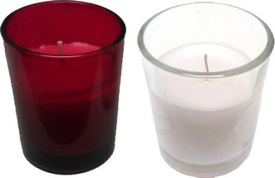A 2.5″ tall glass votive cup. Goes great with our 10 and 15 hour votive candles, (although the 15 hour votive completely fill the cup, with the flame sitting just above the rim).