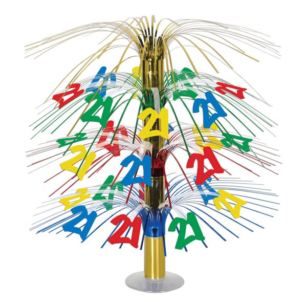 This is a perfect 18″ multi-color 21st birthday centerpiece for your birthday party. Put one on each of the tables for a very festive, colorful look! Made of shiny mylar. It features a clear plastic base and 21s cascading all over it.