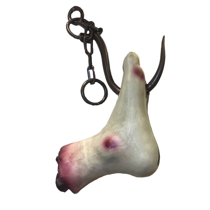 24″ Costume Hanging Meat Hook Foot is a gory decoration for your Halloween viewing pleasure. Size 7 foot has a meat hook right through the center. Measures 24″ from chain to hook.