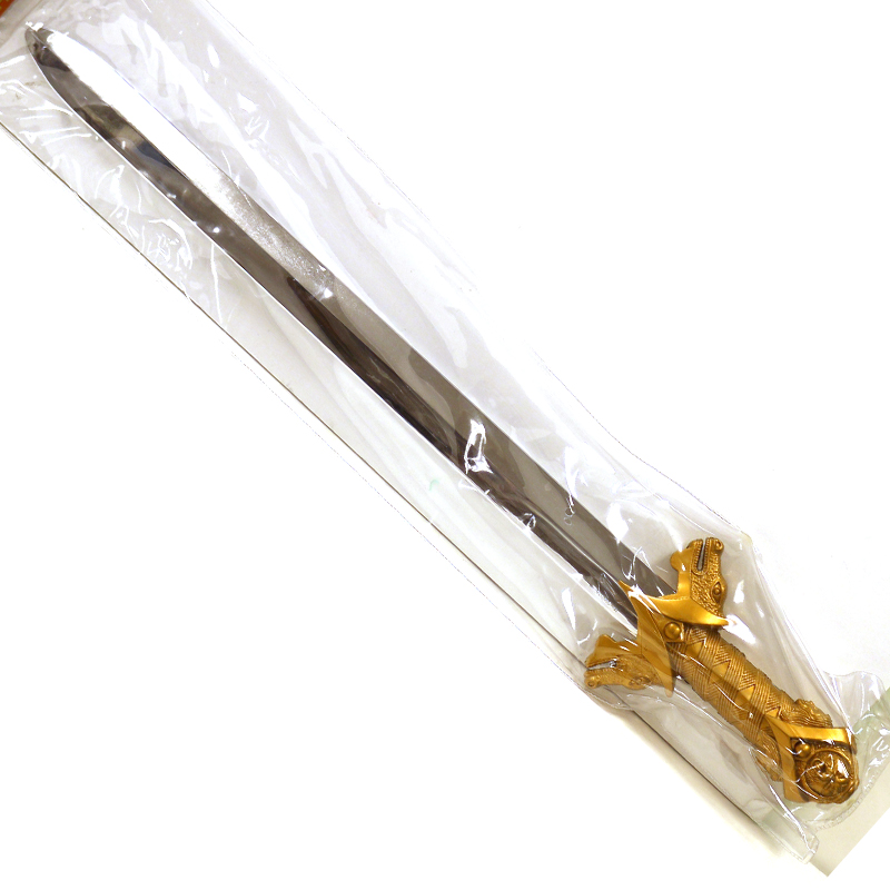 Wield this 25-Inch Costume Plastic Dragon Heads Sword and be the hero in victory! This medieval accessory features a gold plastic handle and shiny silver double-edged blade.