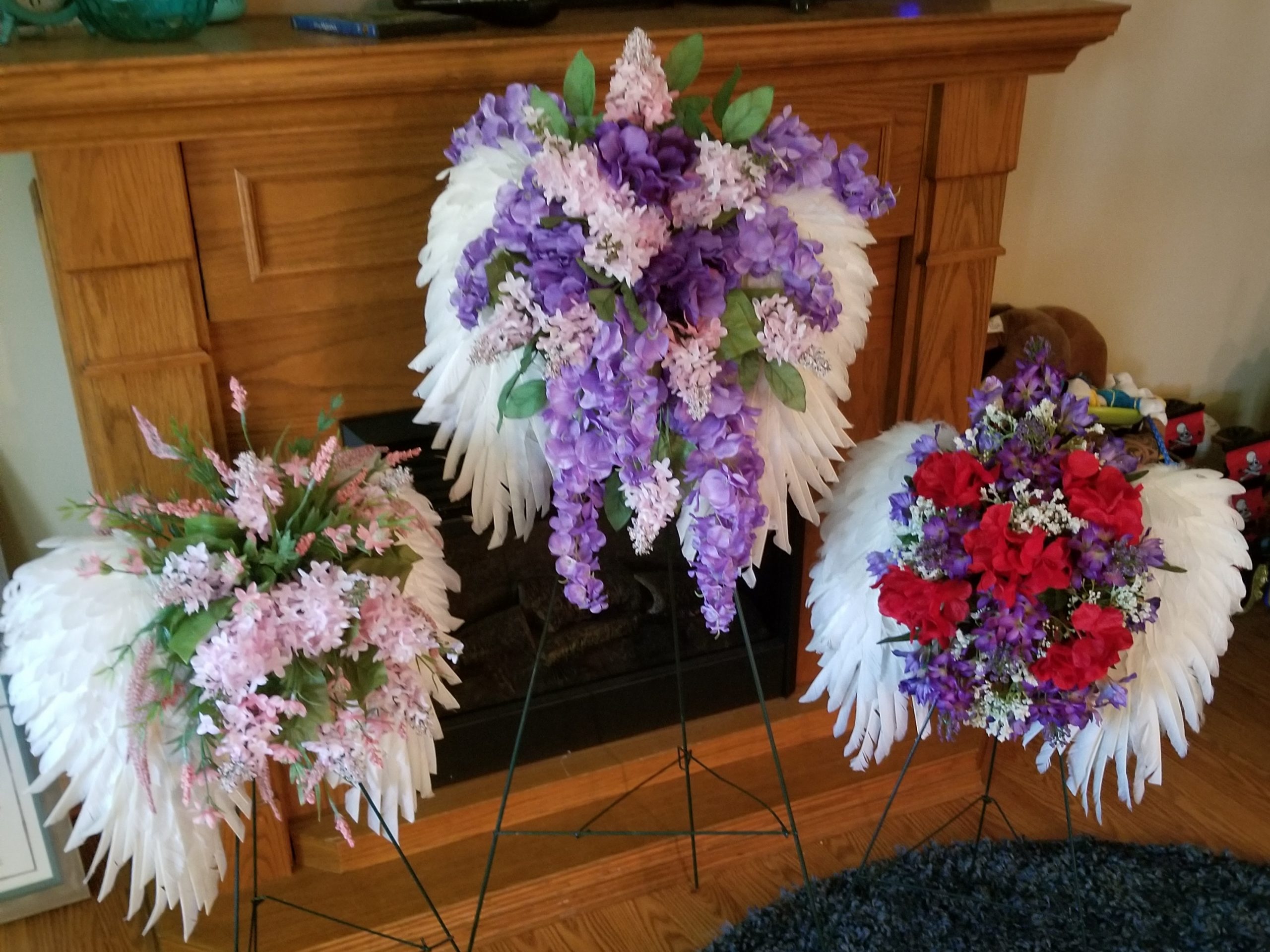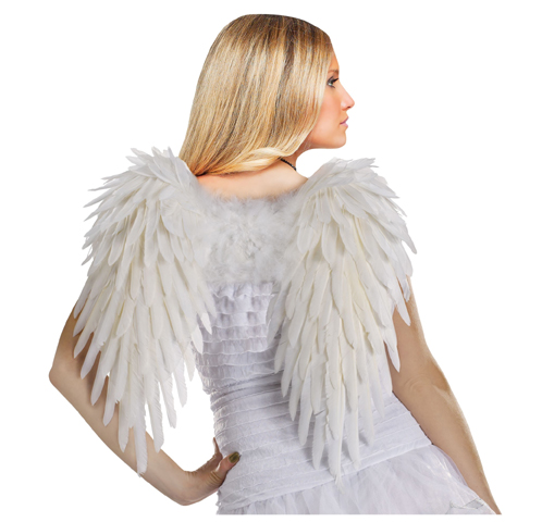 3-D Deluxe pair of Feather Angel Wings feature a molded wing covered with feathers. Choose from either Black or White. Easy to wear and realistic looking wings. These wings look great on stage or at a Halloween party. Perfect for a floral arrangement as well!