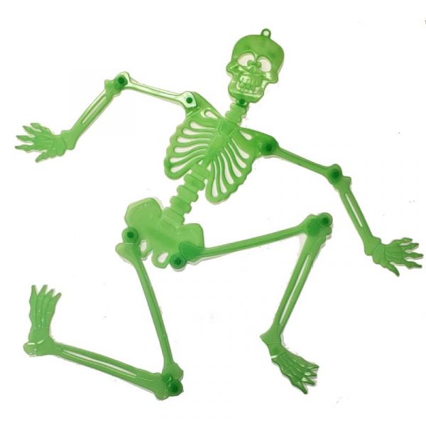 3′ Glow in the Dark Flat Skeleton is hinged at the joints. Use this as a biohazard prop. This is a great yard or porch decoration, too!