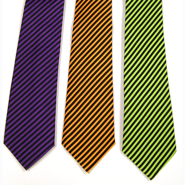 These striped ties make a great accessory for your Halloween costumes or for everyday use. They are 3″ wide, and available in 3 color combinations.