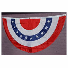 This is flat bunting made of polyester fabric. It measures 3′ x 6′. Metal grommets lessen the chance of the fabric tearing from the corners.