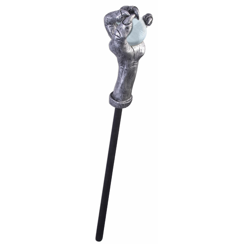 Featuring an interesting four-clawed silver/gray hand at the top of this 48″ Witches & Wizards Staff makes it both spooky and creepy. The claws clutch a clear plastic ball similar to a Fortune Teller’s crystal ball.