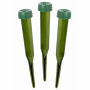 Each green plastic floral water pick holds enough water for a single flower stem. They have a removable rubber cap on them so you can fill them with water, and a hole in the center to insert the flower. These are great for inserting a fresh flower or two into a Dish Garden of plants. They are pointed on the bottom so it’s easy to push them into dirt or a block of Styrofoam etc. They have many uses.