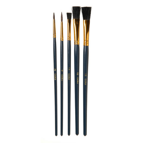 Utility Brush Set – Synthetic Bristle – Round Size #2 and #4 – Flat Size 1/2, 1/2 and 1/4 inch – 1 of each per package.