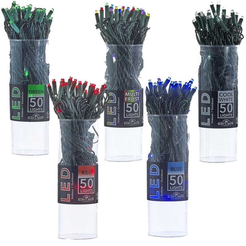 Light up your world for Christmas or any time! This Kurt Adler UL 50-light 5-millimeter wide angle LED light set is a new addition to our extensive light line. Each light set features 50 5-millimeter LED bulbs, this light set offers a wide variety of commercial and residential uses and would be a terrific addition to any party décor.