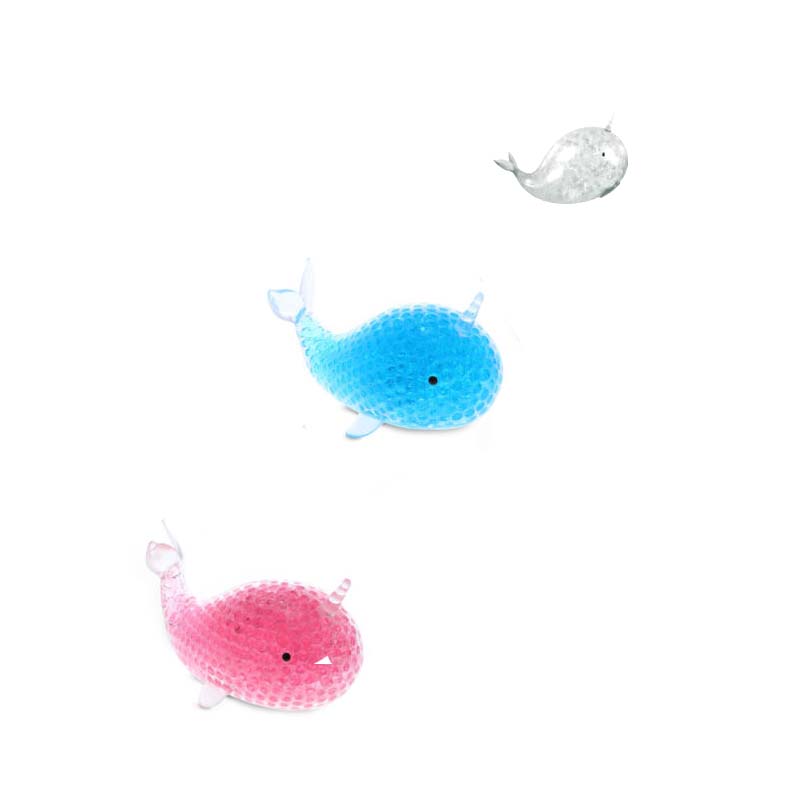 Choose a clear, pink, or blue 6 Inch Party Squishy Bead Narwhal Whale. Kids love to squeeze these toys. Perfect party favor!