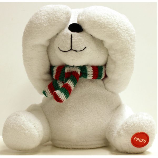 Set this 6″ Peek-A-Boo Plush Moving Laughing Bear on a shelf or in a window! This Kurt Adler Peek-A-Boo Bear is a festive addition to any holiday décor or Christmas tree.