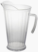 This clear plastic 60 oz. Heavy Duty Pitcher features an elegant style and provides a clean presentation on the table. Great for all kinds of occasions and everyday use.