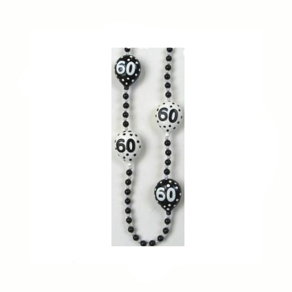 These birthday beads are a must have for the 50th birthday. Necklace measures 42 inches and has shiny multicolored and pearl beads with black and white balloons that read “50.” Phthalate and lead free. Not recommended for children under the age of 3 years.