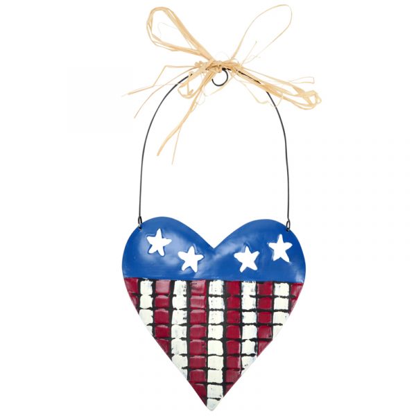 Beautifully crafted. This 7.5″ Hanging Metal Patriotic Heart Plaque can be used indoors if you want to decorate the walls or outdoors on your porch.