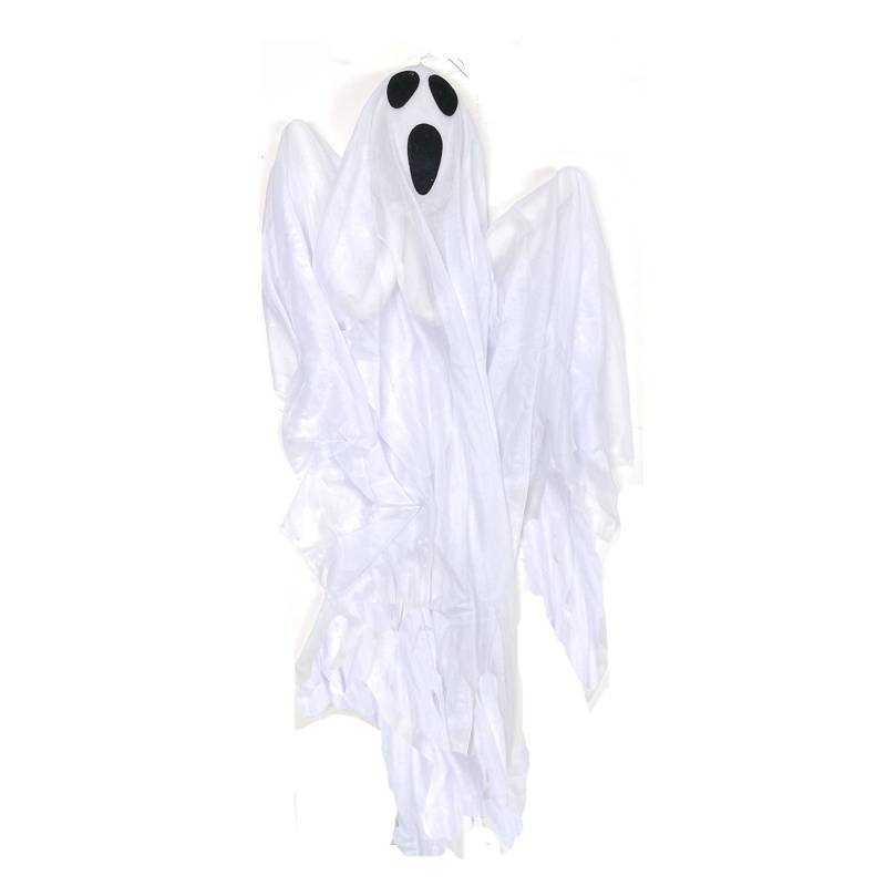 32″ White Posable Fabric Hanging Ghost is a spook-tacular way to decorate this Halloween season. Hang this from your ceiling, in a doorway or on your porch.
