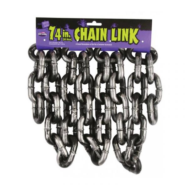Use a 74″ Plastic Chain Link to complete your Halloween decorations! Use it to hang another decoration! It is light weight and looks light the real deal. This product is one continuous chain link. This is the perfect addition to your Halloween decorations.