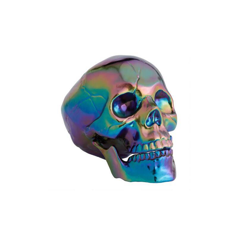 9″ Costume Plastic Oil Slick Skull is an erie and fantastic Halloween decoration. 9″ Costume Plastic Oil Slick Skull has a moveable lower jaw.
