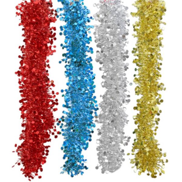 9′ Hexagon Cut Tinsel Garland is perfect for your party decorations. Place these above doorways or around the refreshment tables. These can be hung on the back of chairs and party benches. Decorate for the holidays, birthdays, themed parties and events, and more. This is an easy, simple solution to jazz up your party décor.