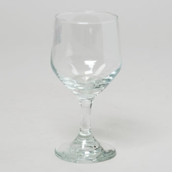 This pretty wine glass is 6″ tall and 2.5″ in diameter. It is fairly sturdy and has a nice “ping” to it.