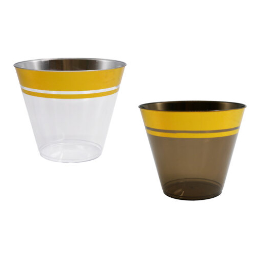Why Choose These Gold Rimmed Tumblers? Planning a large event often involves worrying about broken glassware or long hours of washing dishes. You can avoid these stresses with our 9oz Plastic Tumblers. These sturdy cups withstand the excitement of a busy party while protecting your fine china from accidental damage. They allow you to maintain a professional and beautiful table setup without the risk.