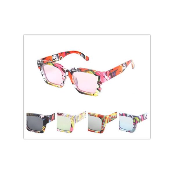 Abstract Printed Frame Sunglasses feature frames adorned with abstract designs or patterns. These designs can vary widely, ranging from geometric shapes and patterns to more intricate artistic motifs. The prints incorporate various colors, textures, and styles, offering a unique and eye-catching aesthetic.