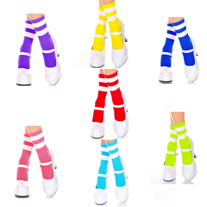 Wear striped top ankle socks for 50s costumes or school spirit!