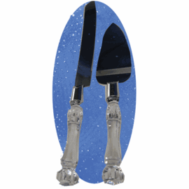 Pretty wedding cake knife and Server Set has Clear Acrylic handles. Knife has a stainless steel blade.