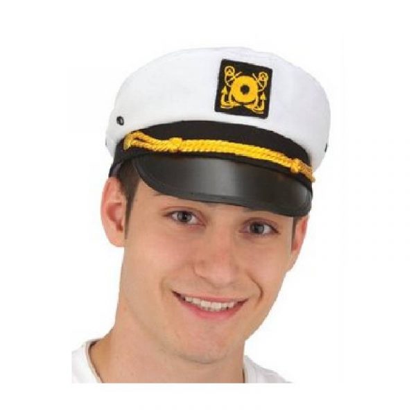 White cotton adjustable ship’s captain, yachtsman, or admiral hat. Wear as a costume accessory or when you pilot your boat to impress your friends! One Size fits most.