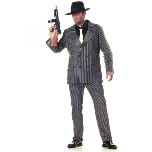 Wear this pin-striped Gangster Costume to a Roaring ’20’s themed party or as a Halloween Costume. Optional accessories include a Fedora and Tommy gun.