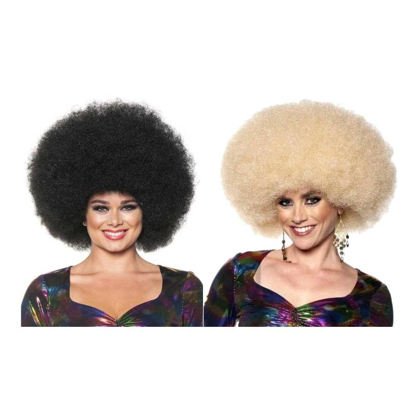 Afro Wig Crimped Long Hair is available in either Black or Blonde. Wear this for Halloween, disco themed parties, a night out on the town, cosplay, drag shows, and more.