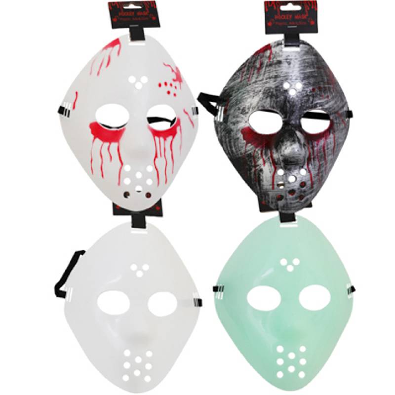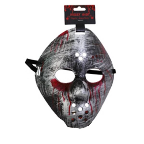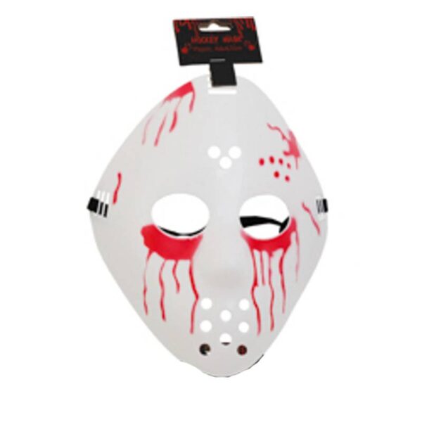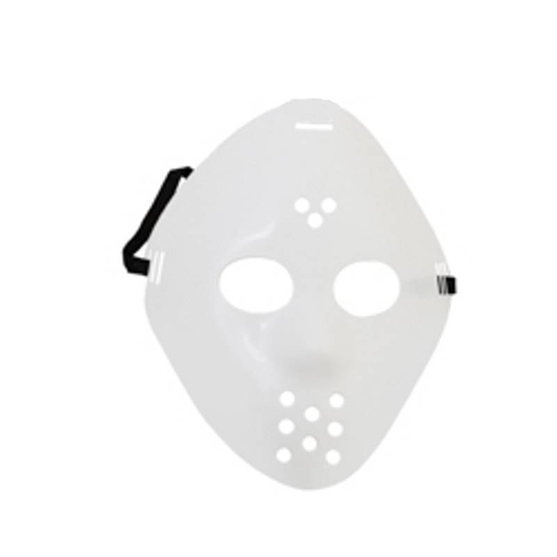 This white plastic hockey mask will be a great accessory for your Jason (from Friday the 13th movie) Halloween costume. It’s attached with an elastic band, and is very comfortable to wear.