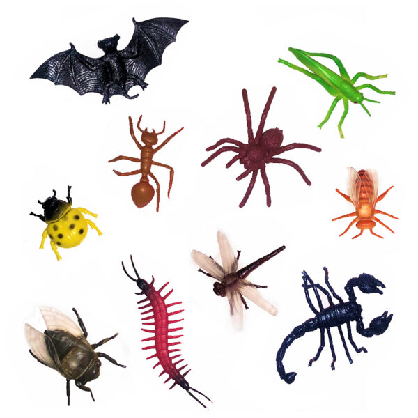 These toy insects are great for playtime or crafts. Add them to terrariums, shadow boxes, science projects, and more. Assortment includes colorful insects and one predatory bat to keep them in line.