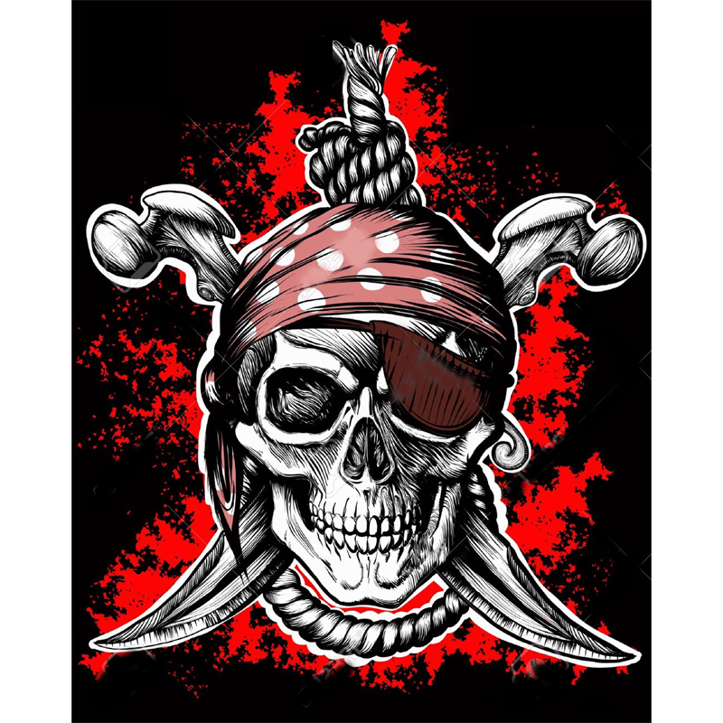 Pirate Skull w Rope Border, Skull and Crossbones w Chains, Skull w Flames, Skull w Spiders